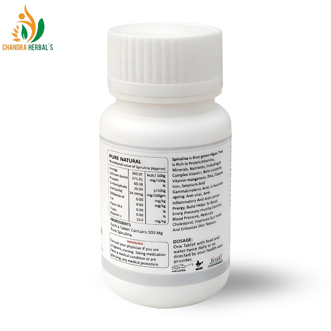 Chandra Herbals is a trusted Spirulina Tablet Manufacturer in Rajasthan, offering high-quality Spirulina tablets prepared from pure and carefully cultivated Spirulina. Our tablets are processed using advanced techniques to maintain maximum nutritional value, purity, and effectiveness, making them suitable for health and wellness applications.