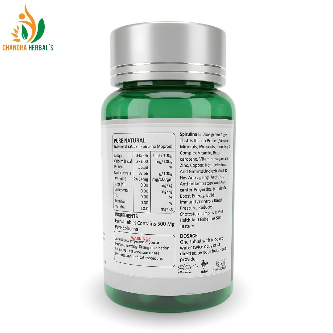 Chandra Herbals is a trusted Spirulina Tablet Super 120 Manufacturer in Rajasthan, offering premium quality spirulina tablets known for their high nutritional value and purity. Our Spirulina Tablet Super 120 is carefully processed using advanced techniques to maintain its natural nutrients, making it an ideal choice for health and wellness applications.